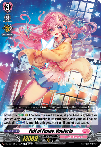 Powerful-[AUTO](RC):When this unit attacks, if you have a grade 3 or greater vanguard with Herminia in its card name, and your soul has no cards, [COST][Counter-Blast 1], and this unit gets [Critical] +1 until end of that battle.