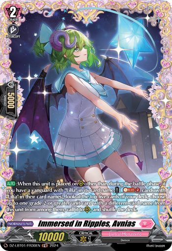 [AUTO]:When this unit is placed on (RC) other than during the battle phase, if you have a vanguard with Lilfa in its card name, [COST][Soul-Blast 2 cards with Lilfa in their card names], look at the top five cards of your deck, choose up to one grade 2 or greater unit card with a different card name from this unit from among them, call it to (RC), and shuffle the deck.